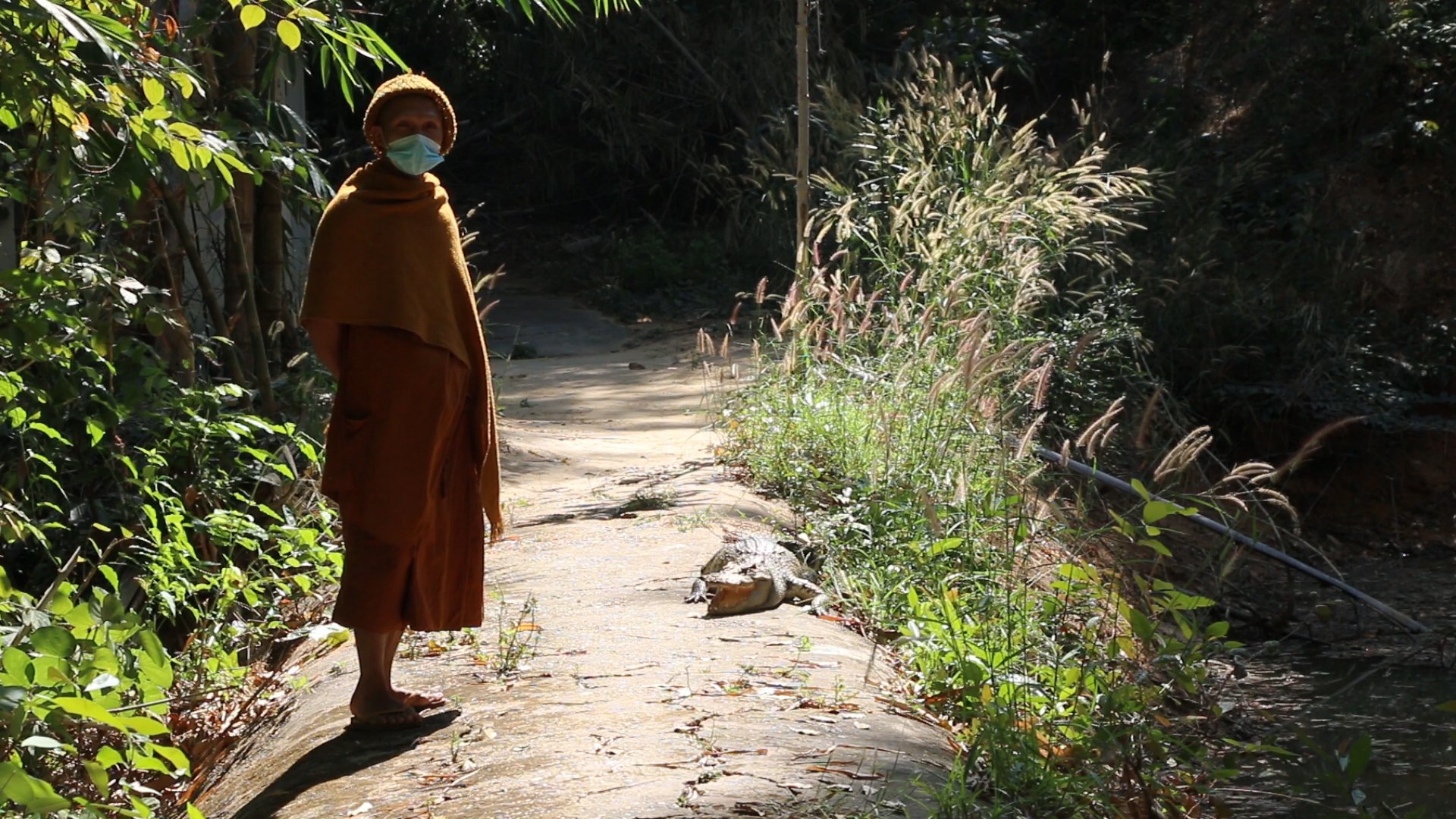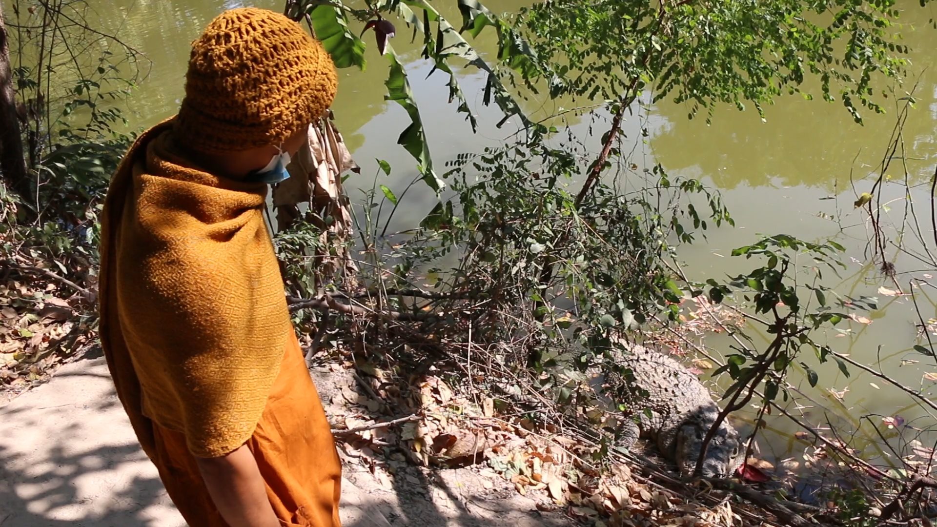 ขณะที่พระอุทิศ อุชุโก อายุ 34 ปี พระลูกวัดที่ทำหน้าที่ให้อาหารจระเข้ทั้ง 3 ตัว กล่าวว่า มาจำพรรษาที่วัดประมาณ 6 ปีแล้ว เจ้าอาวาสคือพระครูนิวิฐสมณวัตร หรือหลวงปู่นงค์ มอบหมายให้ดูแลให้อาหารจระเข้ทั้ง 3 ตัว ซึ่งทราบว่าจระเข้ตัวใหญ่ที่ชื่อทองคำนั้น ทางวัดเลี้ยงดูมากว่า 40 ปีแล้ว ไม่เคยทำร้ายคนหรือสัตว์อื่นๆ และจะรับประทานอาหารอาทิตย์ละ1 ครั้ง เป็นโครงไก่ครั้งละ 4-5ตัว ส่วนเจ้าโชคดี และเจ้าแก้วนั้น มีชาวบ้านที่เคยเลี้ยงไว้ แต่น้ำท่วมบ้าน ไม่มีที่เลี้ยง จึงนำมาถวายวัด ให้วัดเลี้ยงต่อ และทางวัดได้เลี้ยงมา 2-3 ปี แล้ว แต่ละตัวไม่ดุร้าย แต่ไม่ชอบเสียงดัง ถ้าเสียงดังจะหลบซ่อนตัวนานหลายวันก็ไม่ออกมา บางทีก็ขึ้นจากน้ำมาเดินเล่นในวัด นอนอยู่กับสุนัข และไม่เคยทำร้ายพระสงฆ์หรือนักท่องเที่ยวแต่อย่างใด แต่ทั้งนี้คนที่มาทำบุญก็ไม่ควรไว้ใจ ควรดูอยู่ห่างๆ ซึ่งทางวัดก็ได้มีการติดผ้ายเตือนเอาไว้รอบวัดโดยเฉพาะเด็กควรอยู่ในสายตาของผู้ใหญ่อยู่ตลอดเวลา