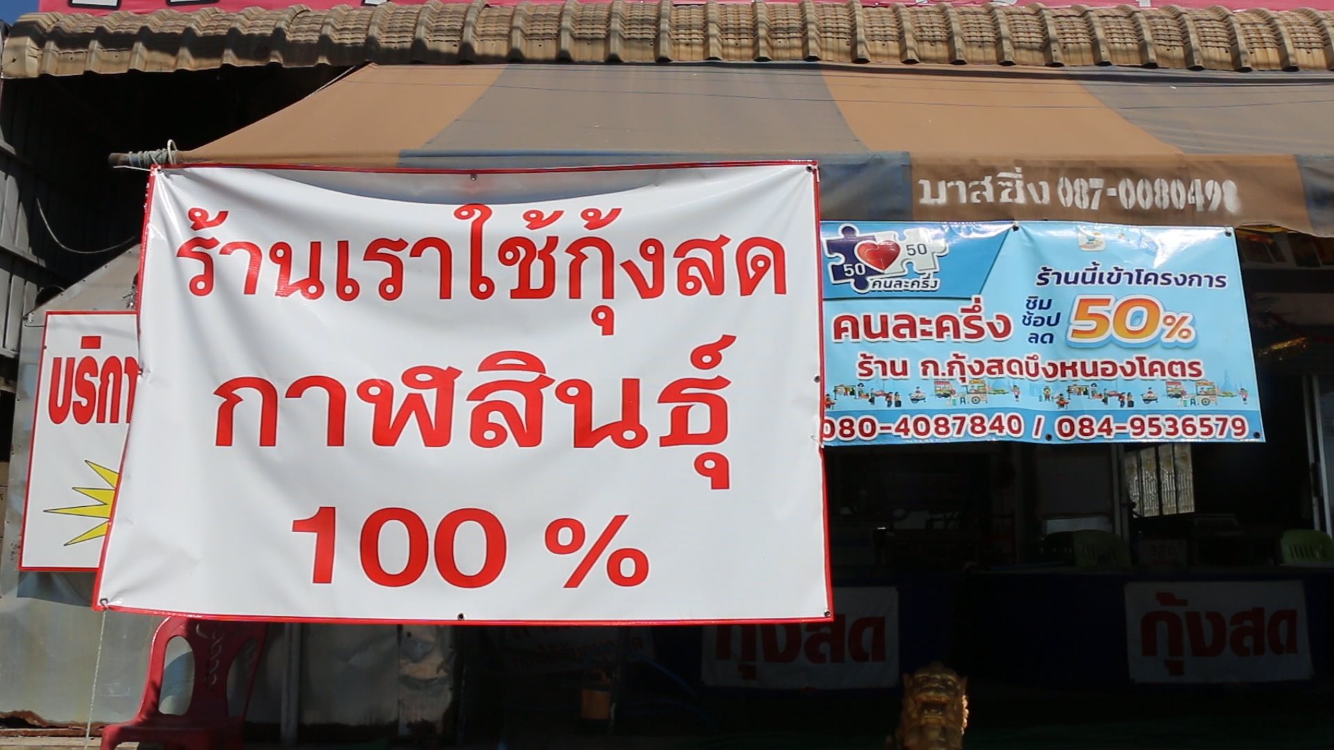 ขอนแก่น เจ้าของร้านกุ้งติดป้ายสร้างความมั่นใจปลอดเชื้อโควิด19