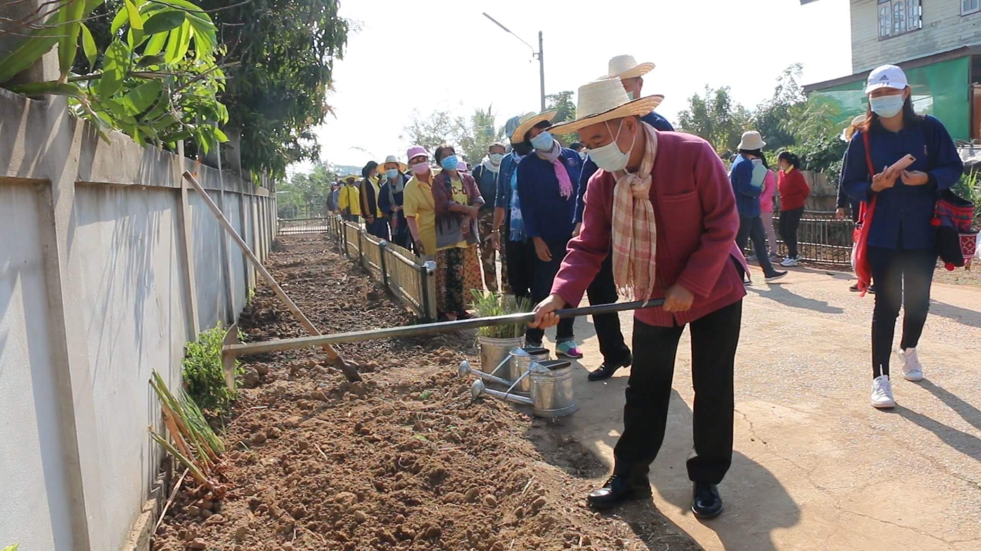 นายจำเริญ แหวนเพ็ชร พัฒนาการจังหวัดขอนแก่น กล่าวว่า บ.หนองบัวจัดเป็นหมู่บ้านต้นแบบและเป็นหมู่บ้านแรกของ จ.ขอนแก่น ที่ได้ดำเนินการสร้างความมั่นคงด้านอาหาร ในสถานการณ์การแพร่ระบาดของเชื้อไวรัสโควิด-19 ที่เกิดขึ้นด้วยการพร้อมใจกันปลูกผักสวนครัวรั้วกินได้นานาชนิดทุกหลังคาเรือน โดยใช้พื้นที่ภายในบ้าน ทำการปลูกผักอินทรีย์ไว้สำหรับการบริโภคและแบ่งปันในชุมชน ขณะเดียวกันวันนี้เป็นการเพิ่มพื้นที่ในการสร้างคลังอาหารของหมู่บ้านแห่งนี้เพิ่มเติมในการใช้พื้นที่สาธารณะประโยชน์และพื้นที่ริมถนน ที่เดิมถูกทิ้งไว้ไม่ใช้งาน มาทำการบริหารจัดการพื้นที่ทำการปลูกผัก ไม่ว่าจะเป็น ข่า ตะไคร้ กะเพรา สะระแหน่ พริก ต้นหอม ผักชี หรือแม้กระทั่งผักคะน้าและกวางตุ้ง ที่คนในชุมชนได้ร่วมกันออกแบบและเติมเต็มในส่วนที่ขาดในการบริหารจัดการในด้านของอาหารในพื้นที่ ด้วยการน้อมนำโครงการพระราชดำริในสมเด็จพระกนิษฐาธิราชเจ้า กรมสมเด็จพระเทพรัตนราชสุดาฯสยามบรมราชกุมารี ที่ทรงพระราชทานเมล็ดพันธุ์ผักให้กับพื้นที่จนนำมาสู่การต่อยอดการสร้างความมั่นคงด้านอาหารในสถานการณ์การแพร่ระบาดของเชื้อไวรัสโควิด-19 ได้อย่างชัดเจน