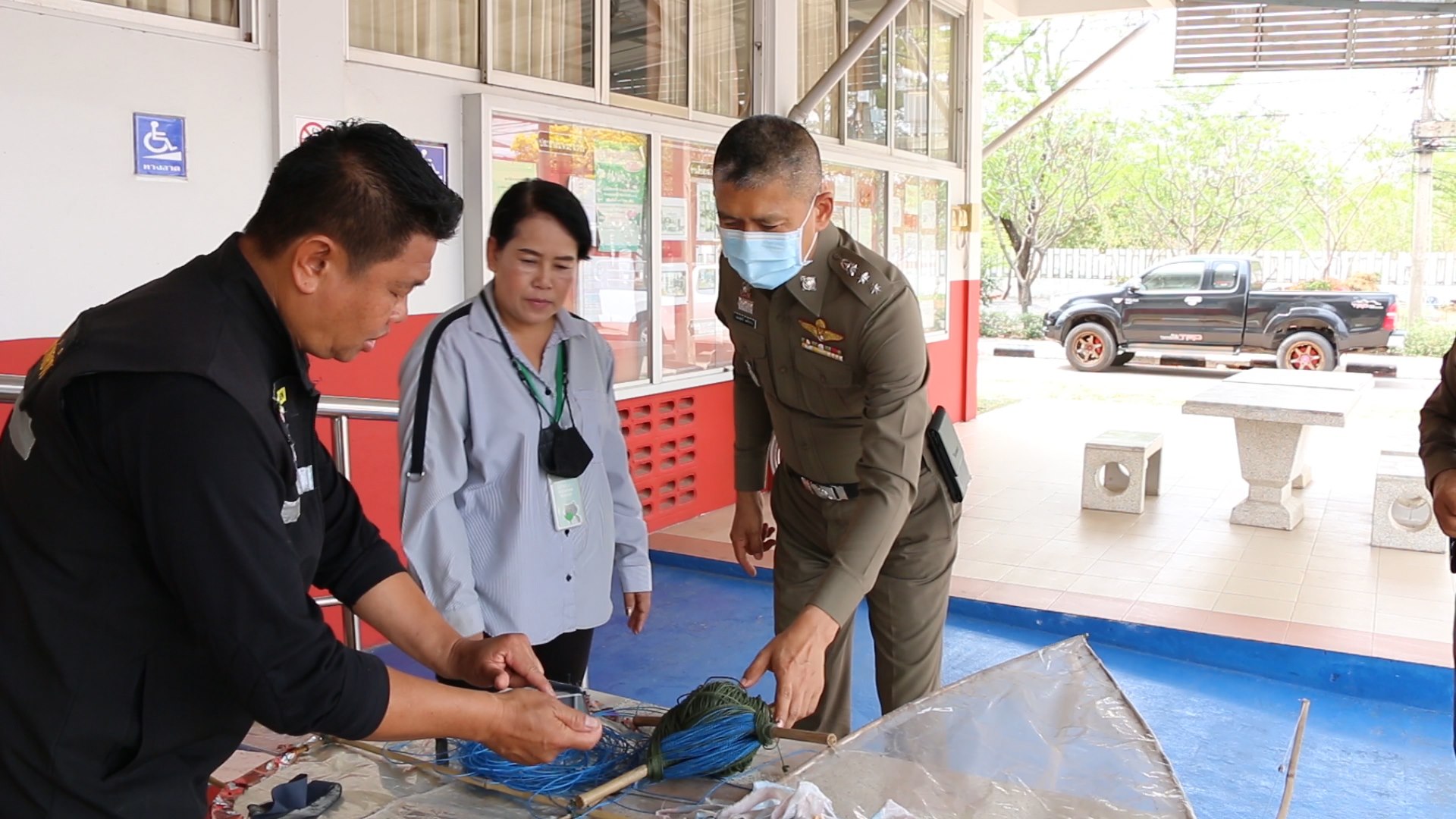 ทางด้าน พ.ต.อ.ถนอมสิทธิ์ วงษ์วิจารณ์ ผกก.สภ.พล กล่าวกับผู้สื่อข่าวว่า หลังเห็นภาพที่มีการแชร์ในโซเชียลจึงสั่งการให้เจ้าหน้าที่ตำรวจชุดปราบปรามและชุดสืบสวนลงพื้นที่หาเบาะแสของคนก่อเหตุ รวมถึงสอบสวนผู้ประสบเหตุ จนพบตัวนายธนกฤต สีพรม อายุ 27 ปี ผู้ประสบและสอบสวนจนทราบรายละเอียดจึงลงพื้นที่ตรวจสอบบริเวณที่เกิดเหตุทั้งบนสะพานและใต้สะพาน กระทั่งพบว่าวและเชือกว่าวยาวหลายร้อยเมตรวางอยู่ที่ทุ่งนา จึงเชื่อได้ว่า เชือกที่พาดบนสะพานเมื่อคืนที่ผ่านมา และเกี่ยวรถของชาวบ้านนั้น น่าจะเกิดจากการเล่นว่าวของชาวบ้านในละแวกดังกล่าว จนลมพัดเชือกว่าวไปพาดบนสะพานและเชือกขาดคนเล่นจึงปล่อยว่าวทิ้งไว้แล้วหนีกลับบ้าน อีกดทั้งเชือกว่าวที่พบ ผู้ประสบเหตุก็ยืนยันว่าเป็นเชือกเส้นเดียวกัน