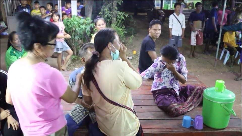 จากนั้นนางน้อย สีจันทร์งาม อายุ 38 ปี พี่สาวคนตาย ได้จุดธูปบอกกล่าวคนตายและเจ้าที่ว่าถึงบ้านแล้ว ขอนำร่างผู้ตายไปตั้งบำเพ็ญกุศลตามประเพณี จากนั้นญาติพี่น้องได้หามโลงศพของคนตานยลงจากรถไปตั้งในบ้าน เพื่อนบ้านต่างพากันจัดแต่งโลงศพประดับด้วยไฟกระพริบ