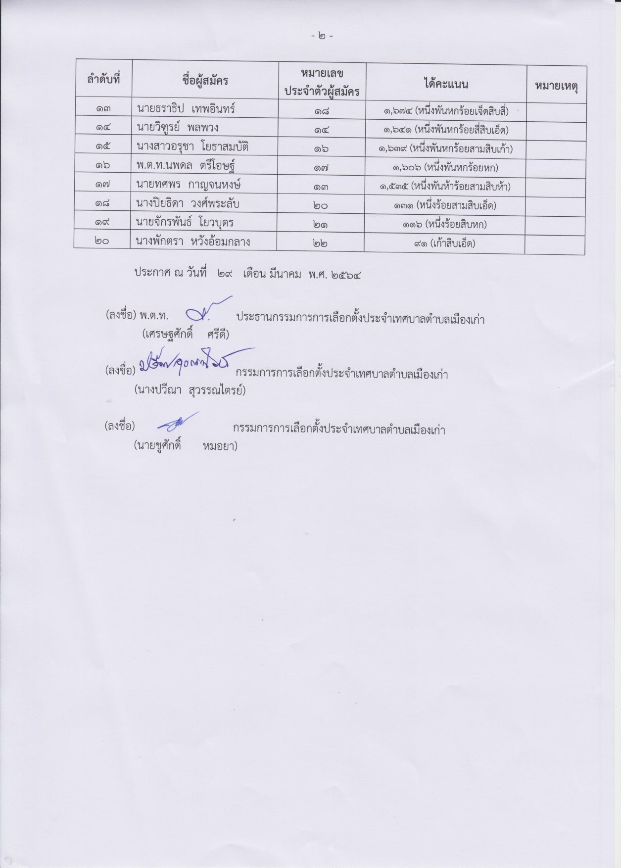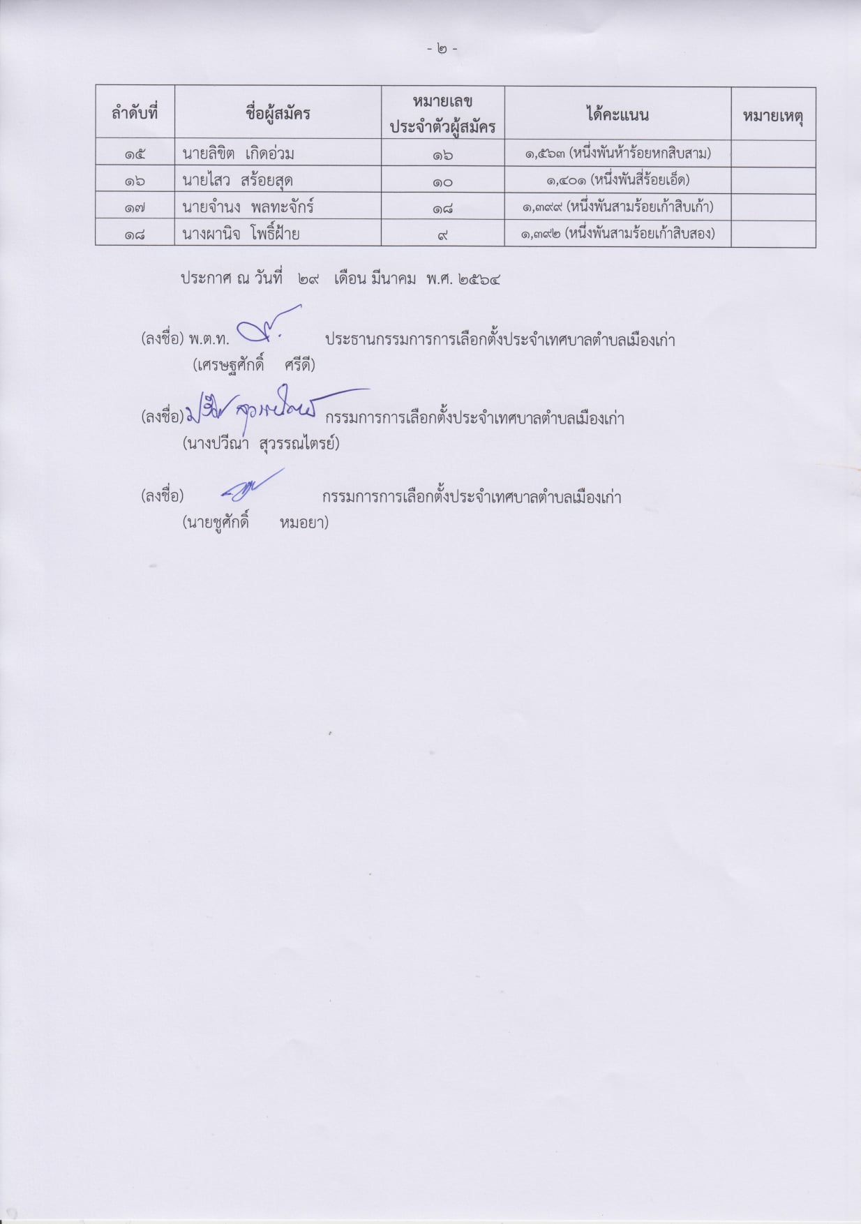 ตำแหน่งสมาชิกสภาเทศบาลตำบลเมืองเก่า เขต 2