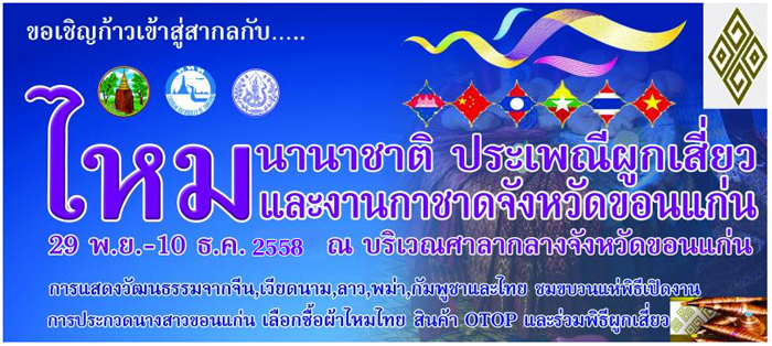 29 พ.ย.- 10 ธ.ค. 2558 งานเทศกาลไหมนานาชาติประเพณีผูกเสี่ยว และงานกาชาดจังหวัดขอนแก่น ประจำปี 2558