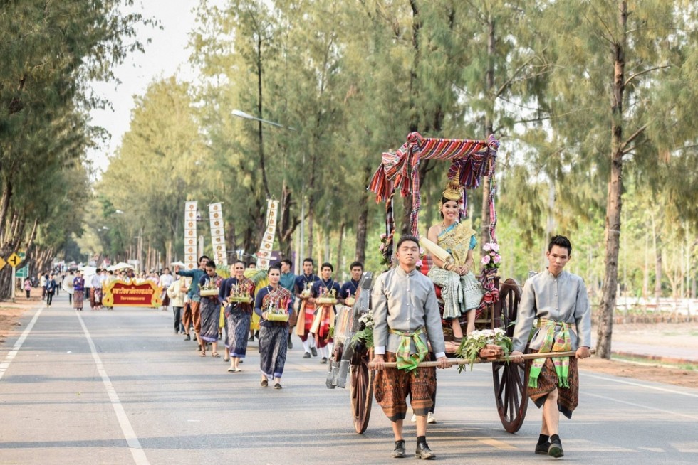 งานบุญเดือนห้า แห่พระพุทธบูชา สมมาอาวุโส เน้นพิธีกรรมเรียบง่าย มีกิจกรรมประกวดขบวนแห่พระพุทธรูปประจำแต่ละคณะ ประกวดนางผู้ดีหลวงแต่ละคณะ และชมขบวนแห่นางสังขาร โดยภายในขบวนแห่ใช้รถประหยัดพลังงานเพื่อลดมลภาวะ มีกิจกรรมประกวดก่อเจดีย์ทราย (ตบประทาย) สรงน้ำพระพุทธรูป สักการะพระบรมสารีริกธาตุ ขบวนแห่พระประจำคณะและนางสังขาร และรดน้ำผู้อาวุโสประจำมหาวิทยาลัย การแต่งกายด้วยชุดผ้าไทย มีบริการให้ยืมผ้าซิ่นและผ้าโสร่งฟรี นอกจากนี้ยังมีการแสดงหมอลำกลอน มีนักศึกษา บุคลากร และประชาชนชาวขอนแก่น เข้าร่วมกว่า 2,000 คน ย้ำเตือนภาพจำในในอดีตให้ปรากฏอย่างงดงามอีกครั้ง