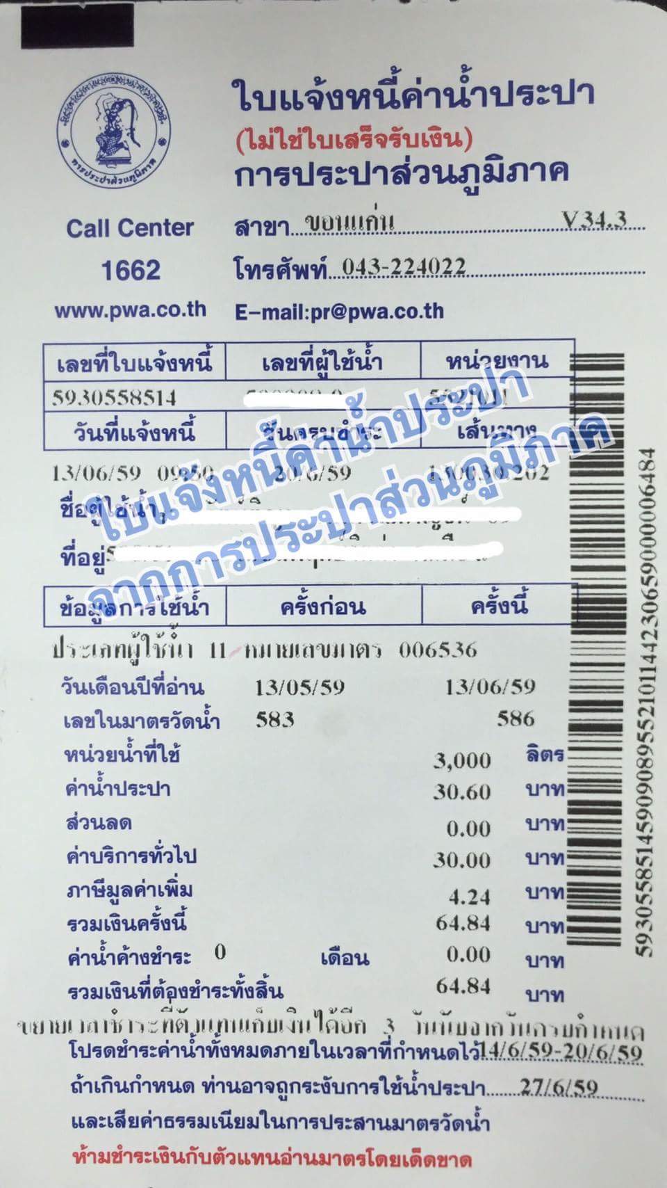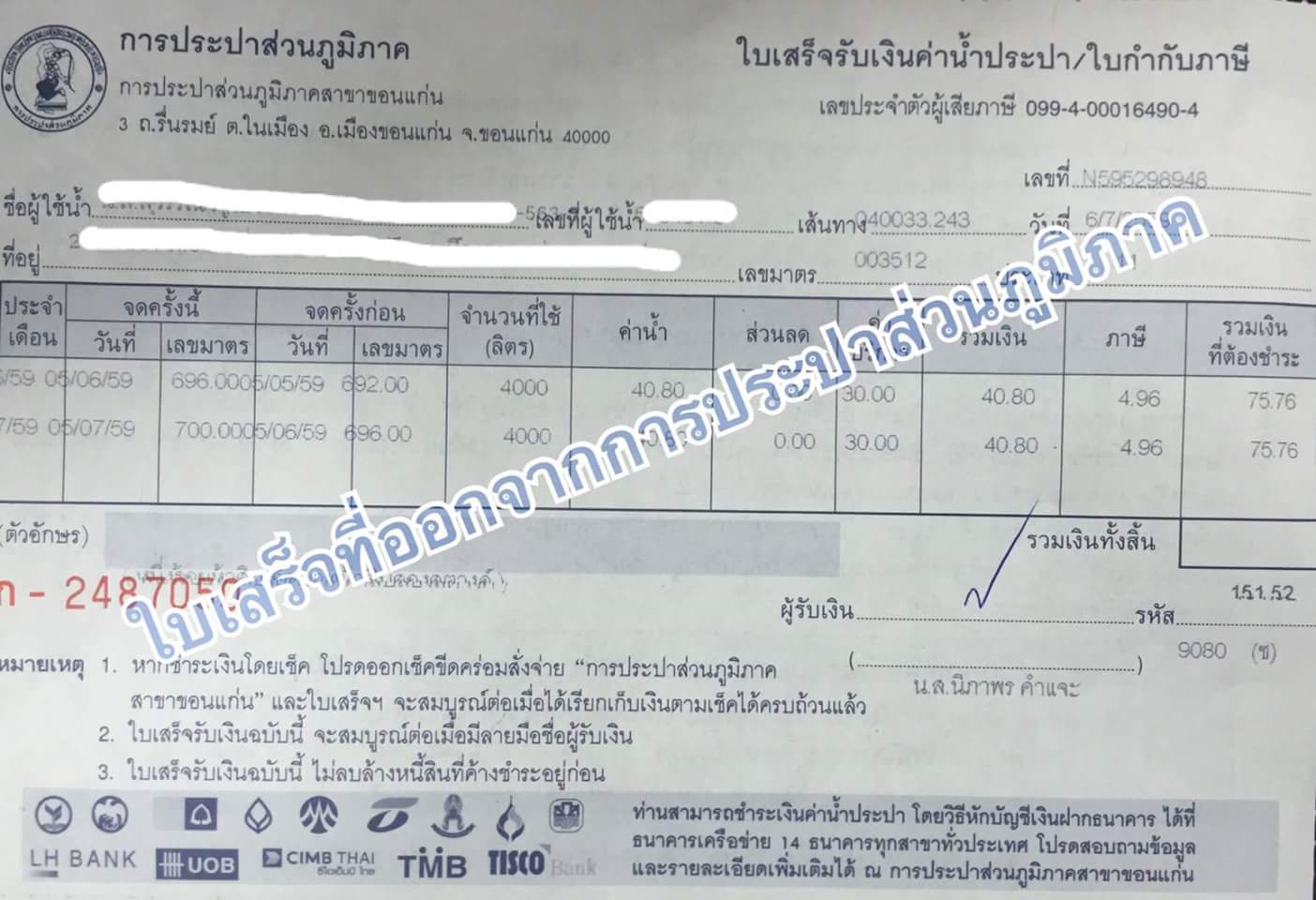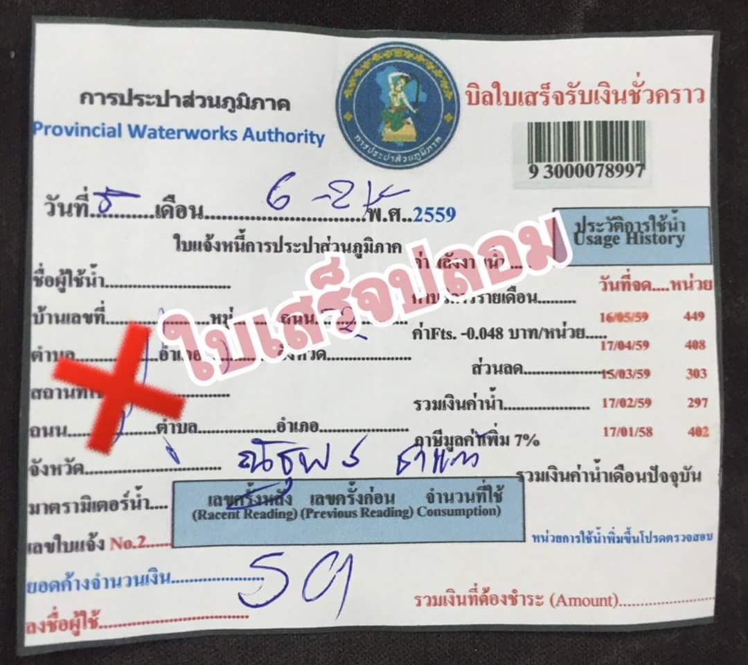 ด่วน ประปาฯขอนแก่นเตือนภัย!มิจฉาชีพออกใบเสร็จปลอมเก็บค่าน้ำ
