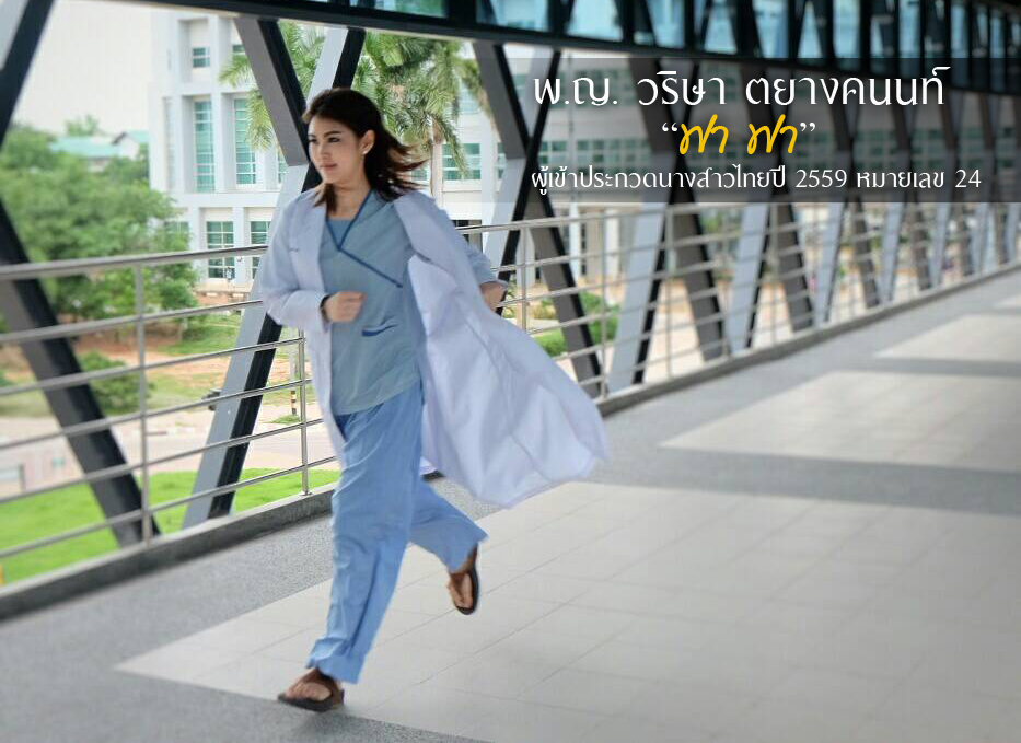แพทย์หญิง วริษา ตยางคนนท์ (หมอฟาฟา) ผู้เข้าประกวดนางสาวไทยปี 2559 หมายเลข 24 อายุ 25 ปี จาก ร.พ.ศรีนครินทร์ ขอนแก่น