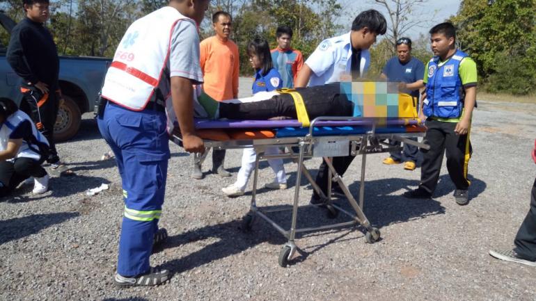 โชเฟอร์บัสขอนแก่น-มุกดาหาร จอดฉี่! รถไหลตกเขา เมียใจเด็ดเอาไม้หนุน ถูกรถทับเจ็บ