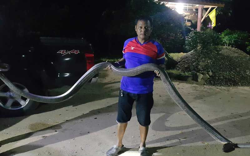 สอบถามเด็กวัดเล่าว่า หลังจากทำความสะอาดลานวัด และกำลังเตรียมตัวกินข้าวมื้อค่ำ ก็พบว่ามีงูจงอางขนาดใหญ่ เลื้อยไปมาอยู่บริเวณลานวัด จึงรีบวิ่งไปแจ้งพระในวัด และจะแจ้งเจ้าหน้าที่กู้ภัยช่วยจับไปปล่อยป่า เพราะกลัวว่าจะถูกงูจงอางทำร้าย ส่วนสาเหตุงูจงอางอาจเลื้อยลงมาจากภูเขาใกล้วัด เพื่อหาอาหารกิน หลังจากพื้นที่เกิดความแห้งแล้ง