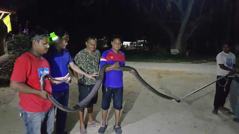 เมื่อเวลา 20.00 น.วันที่ 19 มี.ค.61 เจ้าหน้าที่อาสาสมัครมูลนิธิประชาร่วมใจ ได้รับแจ้งขอความช่วยเหลือจากเด็กวัดถ้ำภูเขาเหล็ก บ้านเขาเหล็ก หมู่ 2 ต.นบพิตำ อ.นบพิตำ ให้ช่วยจับงูจงอางยักษ์ไปปล่อยป่าห่างไกลหมู่บ้าน หลังเลื้อยเข้ามาอยู่ภายในวัดถ้ำภูเขาเหล็ก เกรงว่างูจงอางจะทำร้าย และเป็นอันตรายกับเด็กวัดและพระสงฆ์ภายในวัด