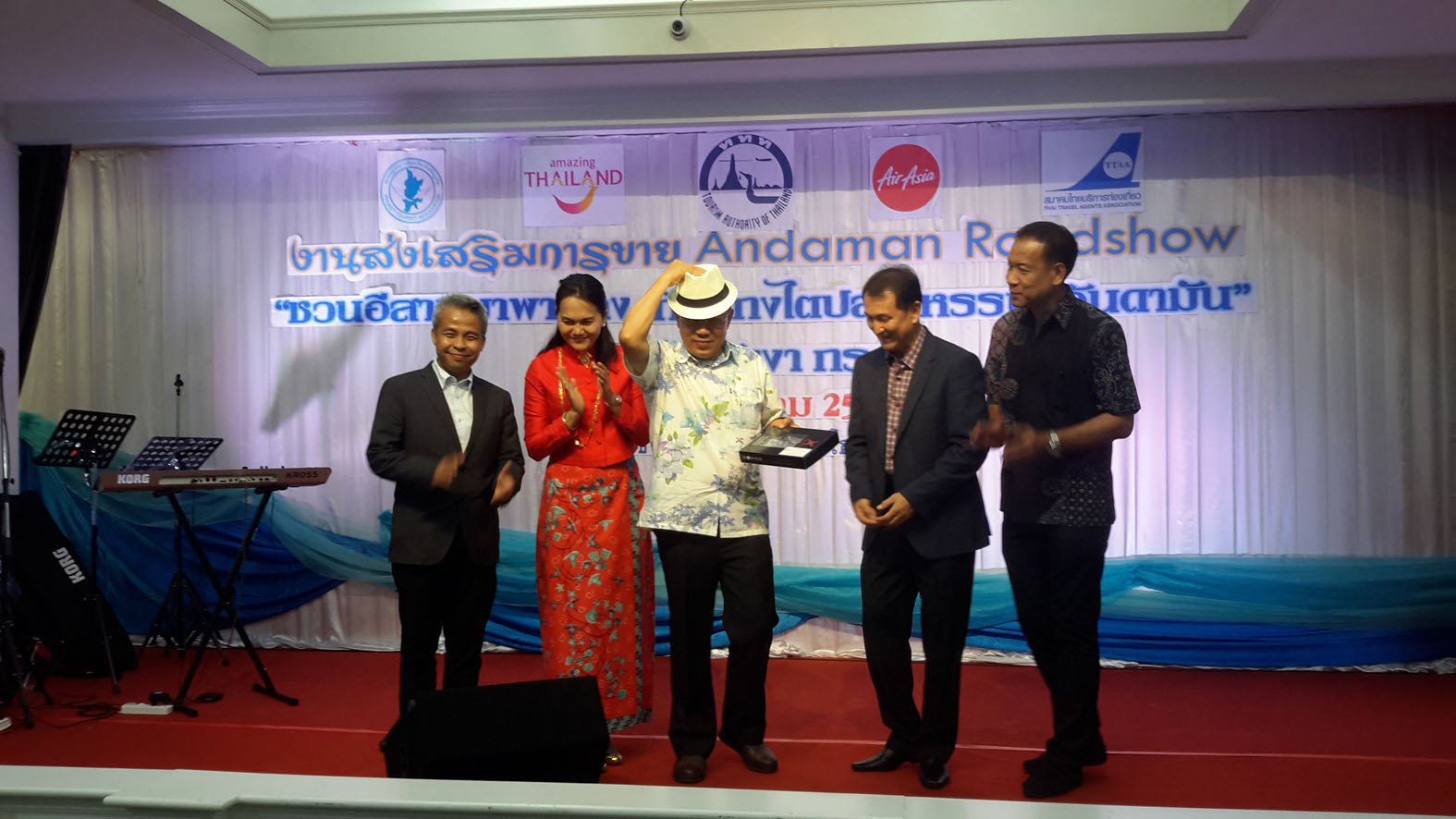"ขอขอบคุณ และชื่นชม ททท.สนง.ภูเก็ต, ททท.สนง.พังงา และ ททท.สนง.กระบี่ และผู้ประกอบการทุกท่านที่ "ตาถึง" เลือกขอนแก่น เป็นเป้าหมายทางการตลาด เดินทางมานำเสนอแหล่งท่องเที่ยวพื้นที่ภาคใต้ เพื่อดึงดูดชาวขอนแก่นให้เดินทางไปท่องเที่ยว ซึ่งเชื่อว่าชาวขอนแก่นคงถูกใจและเกิดการเดินทางท่องเที่ยวข้ามภูมิภาคไปยังภาคใต้มากยิ่งขึ้น และกลุ่มจังหวัดอันดามันได้สนับสนุนด้านธุรกิจชาวขอนแก่นที่ได้ออกแบบผ้าไหมมัดหมี่ของขอนแก่นให้เป็นผ้าไหมลายปาเต๊ะ ในจังหวัดภูเก็ต กระบี่และพังงา อีกด้วย" ผวจ.ขอนแก่น กล่าว.