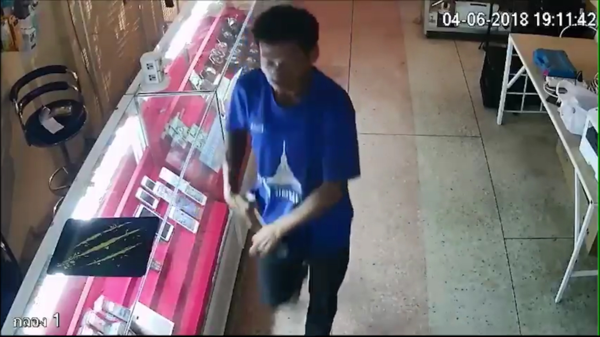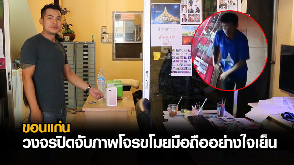 นี่เป็นภาพวงจรปิดร้านศิวัช เทเลคอม สาขาตรงข้ามทางรถไฟ ตั้งอยู่ เลขที่ 271/2 หมู่ 17 ถ.ดรุณสำราญ ต.ในเมือง อ.เมือง จ.ขอนแก่น บันทึกวินาทีโจร เป็นชายผอมสูง อายุประมาณ 25-30 ปี สวมเสื้อยืดสีน้ำเงินหลังเสื้อมีข้อความ "อบจ.ขอนแก่น" มีหมายเลข 9 อยู่หลังเสื้อ สวมกางเกงยีนส์ รองเท้าผ้าใบสีน้ำตาล เดินผ่านหน้าร้านเพื่อดูลาดเลาเมื่อเวลาประมาณ 19.00 น. ของวันที่ 4 มิ.ย.2561 ก่อนจะย้อนกลับมาภายในร้านหลังจากผ่านไปได้ประมาณ 5 นาที โดยได้ลงมือขโมยเอาโทรศัพท์ยี่ห้อไอโฟน 7 พลัส สีชมพู ซึ่งเป็นของเจ้าของร้านวางอยู่บนโต๊ะทำงานไป 1 เครื่อง ก่อนจะเดินสำรวจในร้านอย่างใจเย็น เมื่อไม่มีสิ่งของให้ขโมยแล้วก็เดินออกจากร้านไปเหมือนไม่มีอะไรเกิดขึ้น พร้อมทั้งปิดประตูร้านให้ด้วย