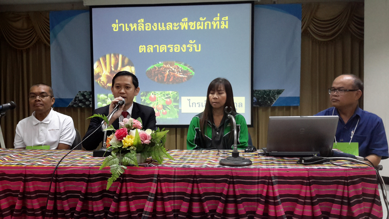 เมื่อเวลา 09.30 น. วันที่ 29 มิ.ย. ณ ห้องประชุมกวี จุติกุล คณะเกษตรศาสตร์ ม.ขอนแก่น ได้มี ผศ.ดร.ไกรเลิศ ทวีกุล อาจารย์ภาควิชาส่งเสริมการเกษตร คณะเกษตรศาสตร์ มหาวิทยาลัยขอนแก่น ได้จัดอบรมเกษตรกรและผู้สนใจ เรื่อง ธุรกิจข่าเหลือง ตลาด แปรรูป และระบบน้ำโซลาร์เซลล์ โดยมีวิทยากร คือ นายชัยยุทธ์ ไชยรัตน์ ผู้จัดการและฝ่ายหาผลิต Tops นางรัมภามาศ ฑีฆธนานนท์ ผู้จัดการตลาดศรีเมืองทอง จ.ขอนแก่น ซึ่งมีเกษตรกรเข้าร่วมการอบรม 200 คน