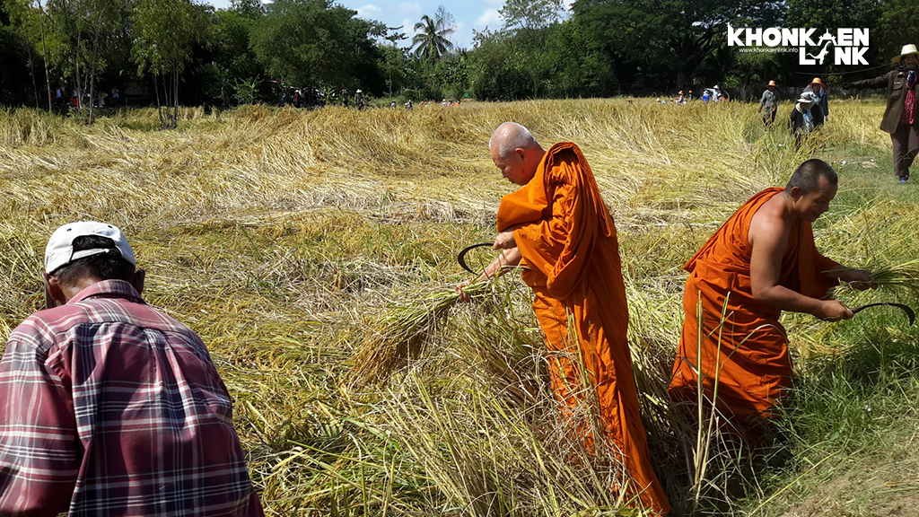 ขอนแก่นชาวบ้านช่วยวัด "ลงแขกเกี่ยวข้าว"