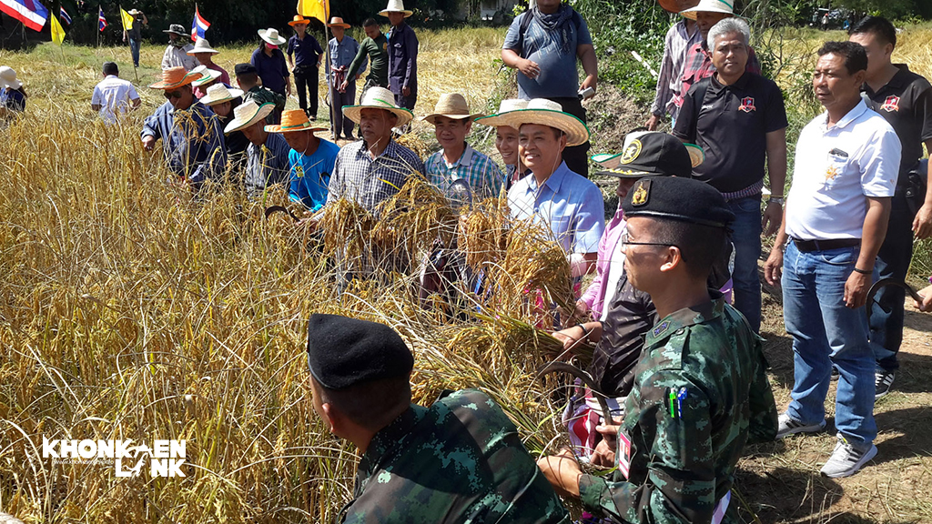 "ปัจจุบันเกษตรกรเจ้าของนาข้าวต้องใช้เงินจำนวนไม่น้อยเพื่อเป็นค่าใช้จ่ายค่าจ้างแรงงานในการเก็บเกี่ยว หากไม่มีเงินทุนมากพอต้องอาศัยแรงงานในครัวเรือนเท่าที่มีอยู่ลงนาเกี่ยวข้าว ตีข้าวเองและนั่นหมายความว่าต้องใช้เวลานานหลายวันกว่าจะเก็บเกี่ยวเสร็จ หากทำไม่ทันก็เสี่ยงสูงมากที่ต้องสูญเสียข้าวที่แก่งอมจนร่วงจากรวง ย้อนไปกว่า 20 ปี สมัยรุ่นพ่อรุ่นแม่ เมื่อถึงช่วงฤดูเก็บเกี่ยวเพื่อนบ้านชาวนาด้วยกันจะผลัดเปลี่ยนหมุนเวียนเกี่ยวข้าวช่วยเหลือเกื้อกูลกันจนแล้วเสร็จทุกครัวเรือน โดยไม่มีค่าจ้าง อย่างมากเจ้าของที่นาก็นึ่งข้าว ทำอาหารมื้อกลางวันเลี้ยงดูเป็นการตอบแทนน้ำใจ การลงแขกเกี่ยวข้าวถือเป็นภูมิปัญญาชาวบ้าน ที่สะท้อนให้เห็นความมีน้ำใจ เอื้อเฟื้อเผื่อแผ่ของสังคมชนบท ทั้งยังเป็นกุศโลบายของบรรพบุรุษเพื่อสร้างความรัก ความสามัคคีในชุมชนอีกด้วย" นายฉัตรชัย อุ่นเจริญ นายอำเภอเมืองขอนแก่น กล่าว.