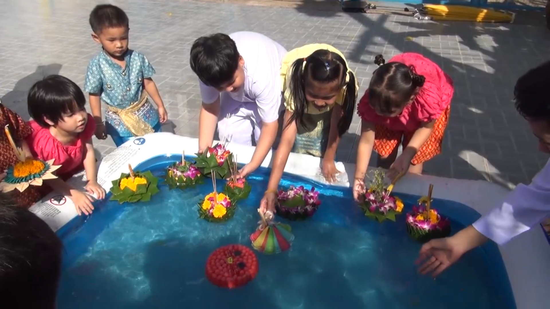 เนื่องในประเพณีวันลอยกระทงของไทย ตามโรงเรียนอนุบาลต่าง ๆ จัดให้เด็กๆ ได้ร่วมงานพิธีลอยกระทงในโรงเรียน ถึงแม้จะไม่มีสระน้ำ แต่ก็ไม่เป็นปัญหา โดยได้ใช้สระน้ำพลาสติกแทนเพื่อให้เด็ก ๆ ได้เรียนรู้ถึงขนบธรรมเนียมประเพณีของไทย