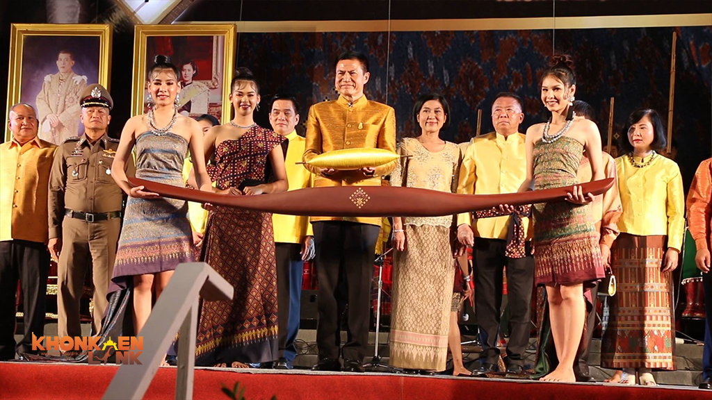 เมื่อเวลา 19.00 น. วันที่ 29 พ.ย.2561 ที่เวทีกลางการจัดงานเทศกาลไหมนานาชาติ ประเพณีผูกเสี่ยว และงานกาชาดประจำปี 2561 นางสันติ เหล่าบุญเสงี่ยม รองผู้ว่าราชการจังหวัดขอนแก่น พร้อมหัวหน้าส่วนราชการทุกส่วนในจังหวัดขอนแก่น ร่วมกันเปิดงาน เทศกาลไหมนานาชาติ ประเพณีผูกเสี่ยว และงานกาชาดประจำปี 2561 อย่างเป็นทางการ โดยนำกระสวยยักษ์เป็นสัญลักษณ์ใช้ในการเปิดงานอย่างยิ่งใหญ่อลังการ พร้อมนางแบบสวมใส่ชุดผ้าไหมลายแคนแก่นคูณ ซึ่งเป็นลายประจำจังหวัดขอนแก่น ออกแบบให้เข้ากับยุคสมัยไม่แพ้ความงามของชุดแฟชั่นที่สวมใส่ในยุคปัจจุบัน พร้อมการแสดงสุดอลังการเล่าเรื่องราวความเป็นมาของผ้าไหมในจังหวัดขอนแก่น ตั้งแต่การเลี้ยงไหมไปจนสู่การทอผ้าไหมแต่ละผืน พร้อมการแสดงบ่งบอกอัตตลักษณ์เมืองขอนแก่น ประเพณีอันดีงามที่สืบทอดต่อกันมาโดยเฉพาะประเพณีผูกเสี่ยวที่ทำพิธีผูกแขนด้วยฝ้ายสายสิญจน์ระหว่างคู่เสี่ยวสร้างความรัก ความสามัคคี เป็นเพื่อนแท้กันจนตายจากกัน โดยมีส่วนราชการ และพ่อค้า ประชาชน เข้าร่วมพิธีเปิดจำนวนมาก