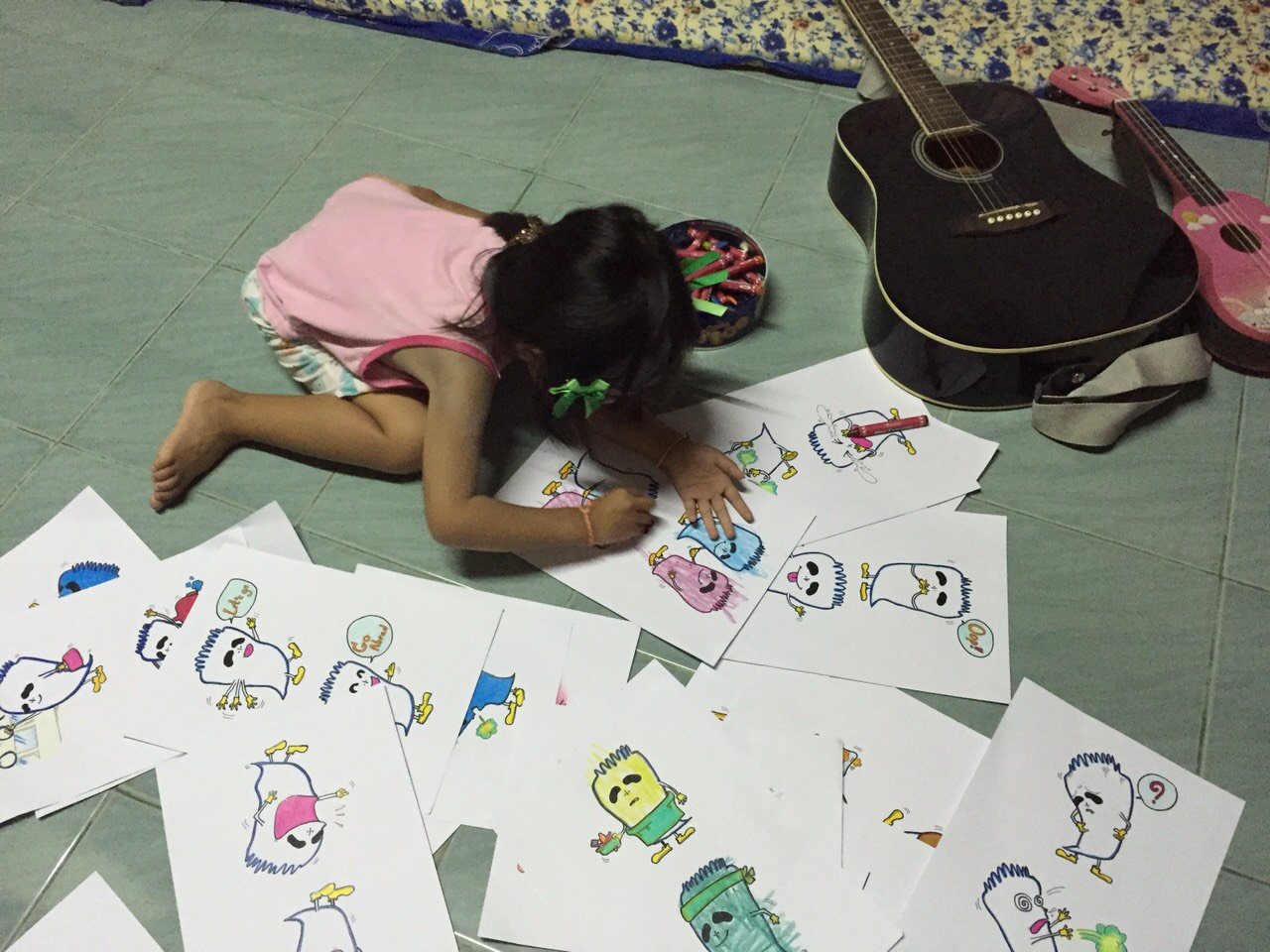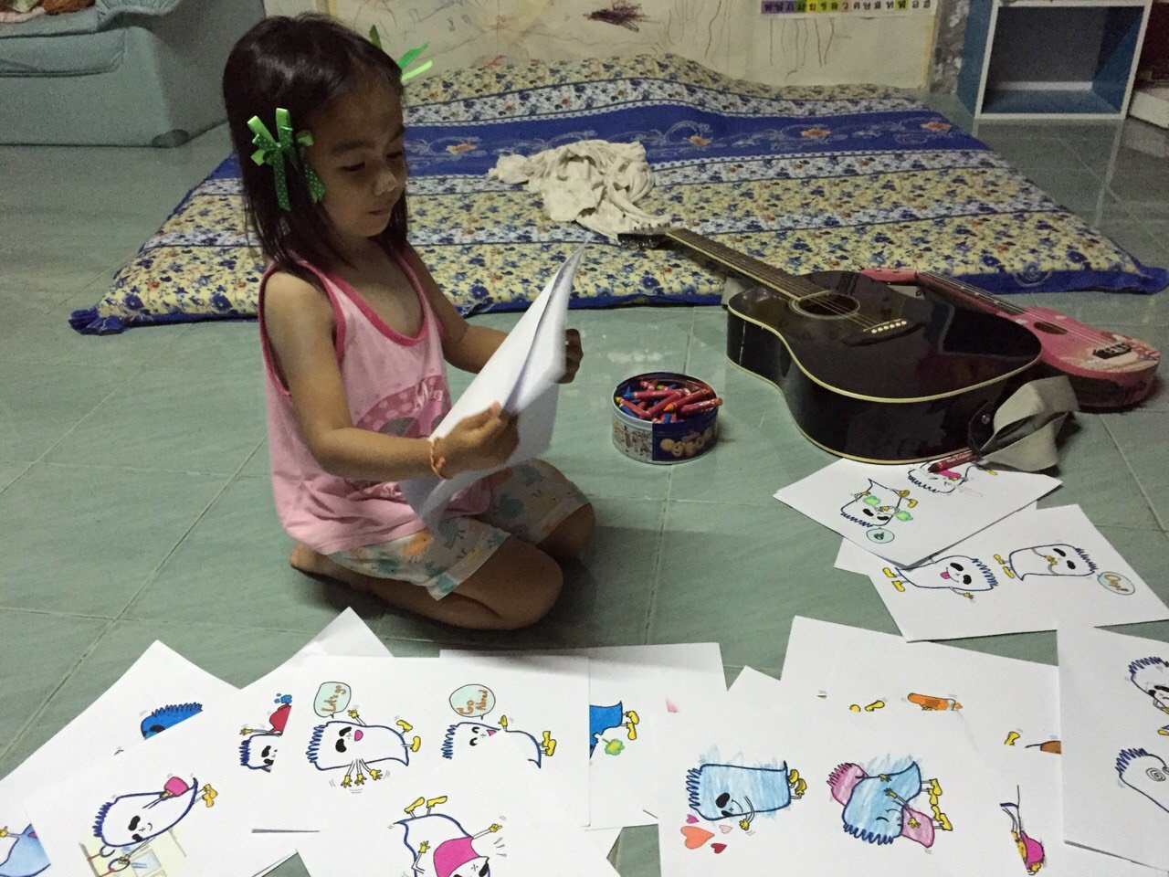 คุณปิงปอง เปิดเผยว่า ลูกสาวของตน ชื่นชอบการขีดเขียนเป็นอย่างมาก ตั้งแต่ 1-2 ขวบ สังเกตว่าชอบดูการ์ตูน วาดรูปเอง ลงสีเอง ตามประสาของเด็ก แต่ก็ไม่ได้สวยอะไรมากมาย จนกระทั่งวันหนึ่งเขาวาดรูปอย่างเช่นเคยตามปกติ แล้วหยิบกระดาษแผ่นนั้น เดินมาบอกตนว่ารูปที่วาดคือ “ผีตาโบ๋” โดยให้ตนเล่นเป็นยักษ์ไล่กัดกัน