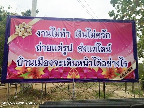 พอเห็นข้อความแบบนี้แล้ว ก็ไม่รู้ว่าจะไปแทงใจดำใครเข้าบ้างหรือเปล่า แต่ที่แน่ ๆ ข้อความนี้ช่างโดนใจชาวเน็ตยิ่งนัก อย่างไรก็ดี ไม่มีรายงานว่า ป้ายอวยพรปีใหม่ 2559 นี้ เป็นของเขตพื้นที่ใดกันแน่