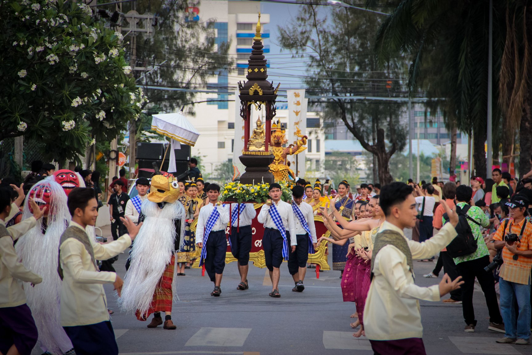 เมื่อเวลา 17.00 น. วันที่ 10 เม.ย.2562 ที่พุทธศิลป์สถาน ริมบึงสีฐาน มหาวิทยาลัยขอนแก่น รศ.นพ.ชาญชัย พานทองวิริยะกุล อธิการบดีมหาวิทยาลัยขอนแก่น เป็นประธานเปิดงานบุญเดือน 5 แห่พุทธบูชา สมมาอาวุโส พร้อมจัดขบวนแห่พุทธบูชาและพิธีรดน้ำสมมาอาวุโสกิจกรรมการประกวดตบปะทาย ( ก่อเจดีย์ทราย ) ณ ริมบึงสีฐาน การแสดงศิลปวัฒนธรรมพื้นบ้านอีสาน การแสดงฟ้อนบูชาหลวงพ่อพระศรี ๕๐ ปี มข. เพื่อส่งเสริม อนุรักษ์ สืบสานงานประเพณีของไทย อีกทั้งเพื่อสร้างความเข้มแข็งให้กับสังคมชุมชนมหาวิทยาลัยขอนแก่น รวมทั้งเพื่อเป็นการแสดงออกถึงความกตัญญูกตเวทีแก่ผู้มีพระคุณ และความเป็นสิริมงคลตามแบบประเพณีไทย ส่งเสริมวัฒนธรรมฮีตสิบสองคองสิบสี่ตามแบบวิถีภูมิปัญญาพื้นบ้านอีสาน