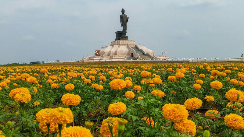 ขอเชิญสัมผัสบรรยากาศที่แสนสบาย ท่ามกลางทุ่งดอกดาวเรืองเหลืองกว่า 90,000 ต้น บริเวณสองข้างองค์พุทธมณฑลอีสาน จังหวัดขอนแก่น ซึ่งจากความร่วมมือร่วมใจของชาวศิลาที่ช่วยกันปลูกดอกดาวเรือง เพื่อรอต้อนรับนักท่องเที่ยวมาชื่นชม ที่สำคัญภายในงานท่านยังจะได้สักการะขอพรองค์พุทธมณฑลอีสาน จังหวัดขอนแก่นเพื่อความเป็นสิริมงคล ตลอดทั้งวัน
