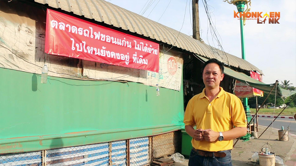 “งบประมาณในการลงทุนตามโครงการดังกล่าวรวมกว่า 600 ล้านบาท ซึ่งบริษัทฯ ยังคงให้สิทธิ์ผู้ประกอบการรายเดิม ในการเลือกพื้นที่ของการค้าขาย ในโครงสร้างใหม่ที่บริษัทฯนั้นได้กำหนดขึ้น ซึ่งตลาดรถไฟขอนแก่นนั้นไม่ได้ย้ายไปไหน วันนี้มีการปล่อยข่าวหรือกระทำการใดๆเพื่อที่จะสร้างความสับสนให้กับพ่อค้า แม่ค้า และลูกค้า ซึ่งบริษัทฯได้เข้าพื้นที่พูดคุยทำความเข้าใจถึงการเปลี่ยนแปลงที่เกิดขึ้นตามระเบียบที่การรถไฟแห่งประเทศไทย กำหนด อย่างไรก็ตามในระยะของการก่อสร้างนั้นจะไม่สะดวกในบางจุด ตามแผนงานที่กำหนดก็ต้องขออภัยพ่อค้า แม่ค้า และลูกค้า ในภาพรวม แต่การค้าขาย ในจุดดังกล่าวก็จะยังคงดำเนินการในลักษณะเช่นนี้ต่อไปตลอดทั้ง 24 ชั่วโมง เพราะตลาดรถไฟขอนแก่นแห่งนี้นั้นอยู่คู่กับเมืองขอนแก่นมานานและวันนี้คนขอนแก่นมีความตั้งใจจริงในการเข้ามาพัฒนาพื้นที่เชิงพาณิชย์ให้มีความสะดวก สบาย มีความทันสมัยและเป็นตลาดคู่เมืองขอนแก่นที่ทุกคนต้องมาใช้บริการ”