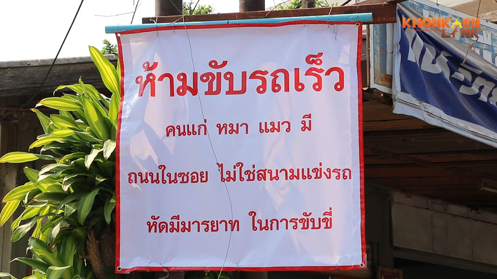 ชาวชุมชนหลักเมืองเทศบาลนครขอนแก่น ขึ้นป้ายโวยผู้ขับขี่รถยนต์และรถจักรยานยนต์ผ่านในซอย ระบุไม่ใช่สนามแข่งรถ มีทั้งคนแก่และสัตว์เลี้ยง หัดมีมารยาทในการขับขี่
