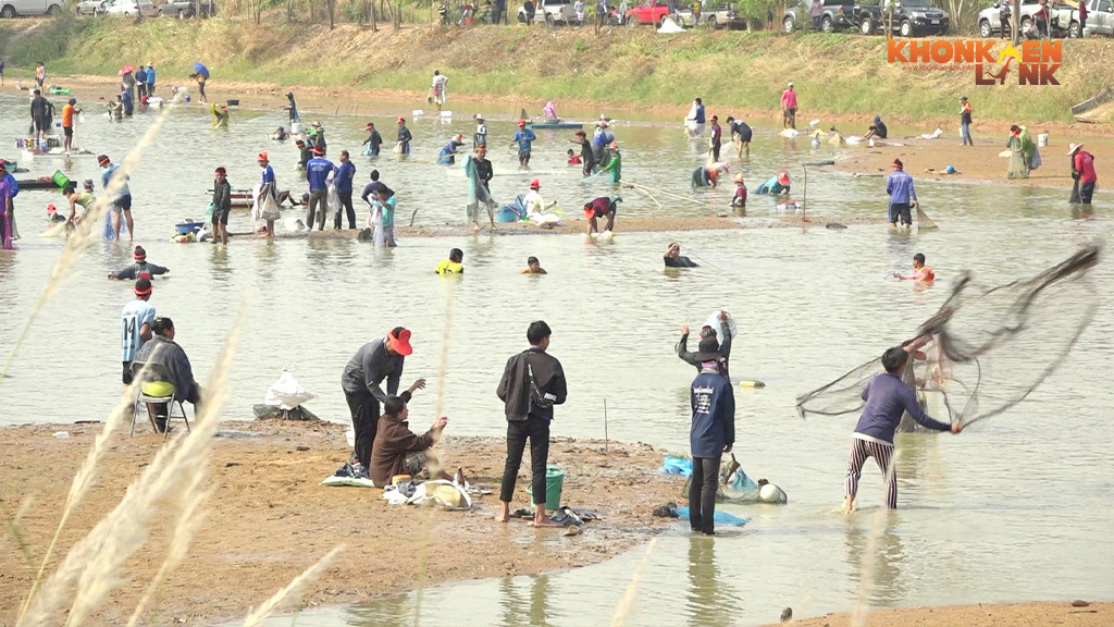 เซียนหาปลา แห่ลงแขกจับปลา ทำบุญให้กับทางวัด เป็นทุนการศึกษาให้กับนักเรียน หลังจากน้ำค่อยๆแห้งลงในช่วงภัยแล้ง